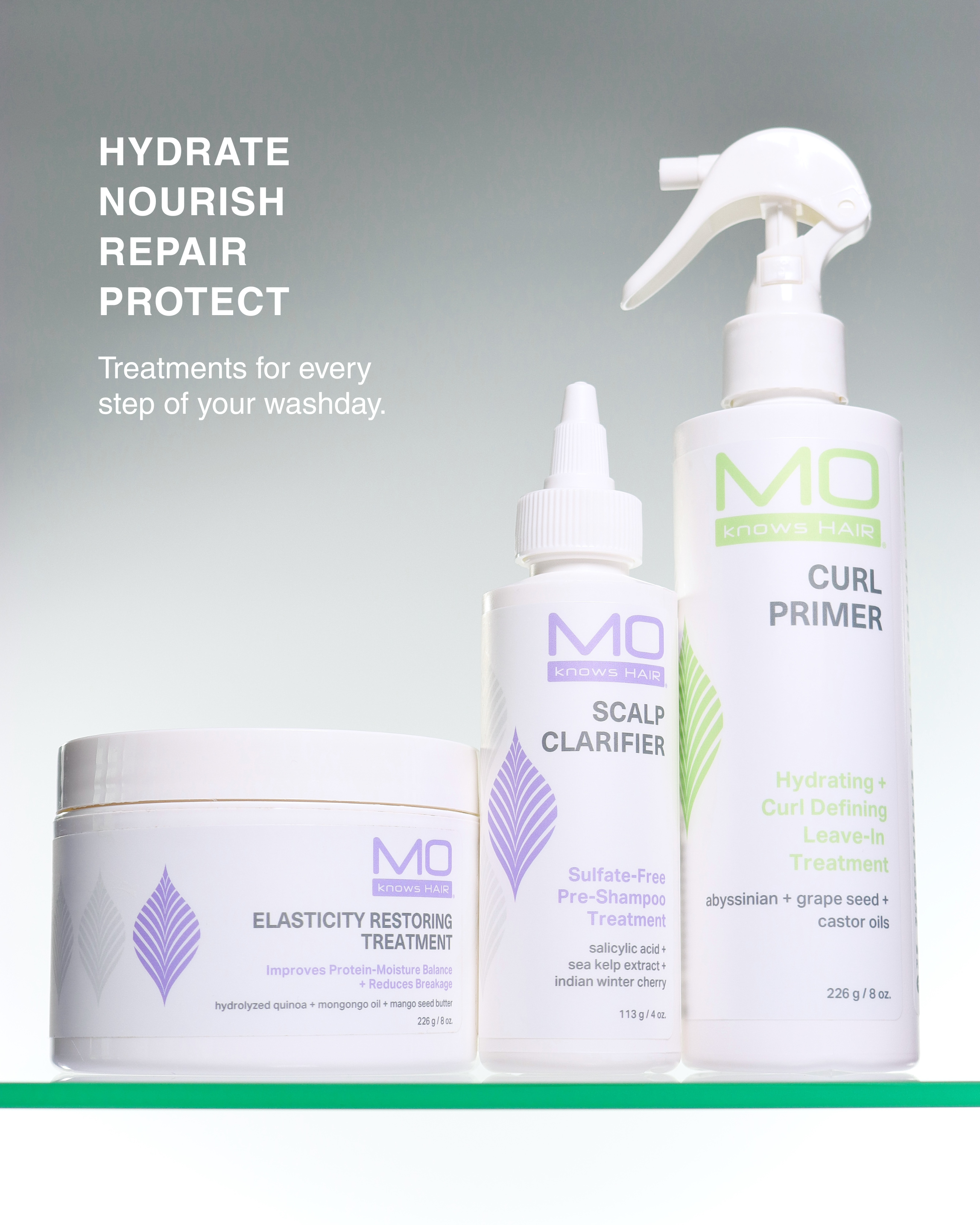 Not sure where to start on your healthy hair journey? Feeling stuck at the same length with the same problems? Well, the Treatment Trifecta is for you! Hydrate, nourish, repair and protect at every stage of your washday process with this trio of treatments.