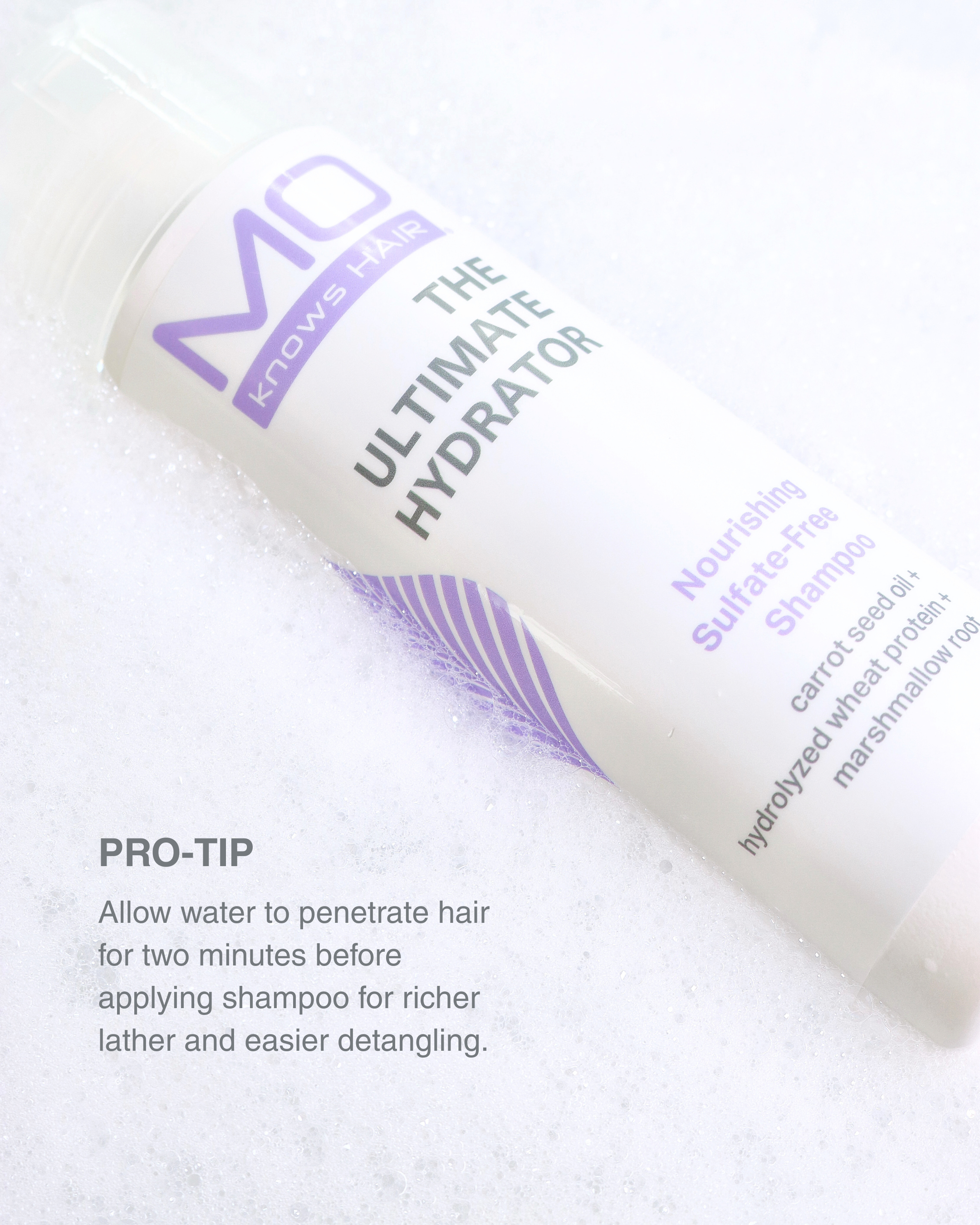 Pro-Tips: Soak hair with water for a few minutes before applying shampoo because it works better that way! Emulsify it in your hands and glide it down the section of hair, gently massaging it through. Avoid rough circular or scrubbing motions and nail scratching in your scalp (fingertips only).